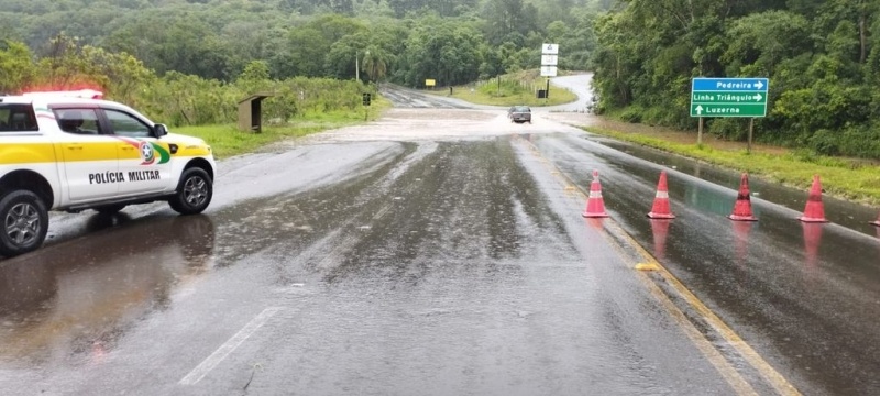 A informação foi repassada pela Polícia Militar Rodoviária (PMRv) no início da manhã desta sexta-feira (03). A interdição ocorre no mesmo local das vezes anteriores, no km 59,8, na altura de Linha Triângulo. O trecho é entre Luzerna e Ibicaré.