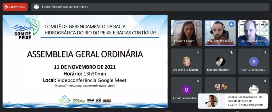 Foi realizada na última quinta-feira (11) a última Assembleia Geral Ordinária do Comitê Peixe no ano de 2021. Na oportunidade, a entidade executiva ECOPEF, representada pela assessora técnica Laís Bruna Verona, realizou a apresentação do relatório técnico de atividades referente ao período de junho a novembro de 2021. Na apresentação, Laís destacou o cumprimento das metas estabelecidas nos indicadores de desempenho previstos no aditivo ao Termo de Colaboração n° 0005/2018, firmado entre a entidade executiva e a Secretaria de Estado de Desenvolvimento Econômico.
