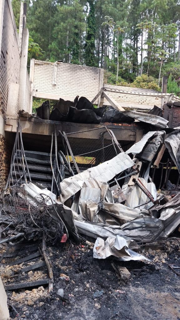 Imediatamente, iniciaram-se os trabalhos de extinção do fogo, para proteção dos imóveis adjacentes e da plantação de pinus que ficava imediatamente atrás da edificação.