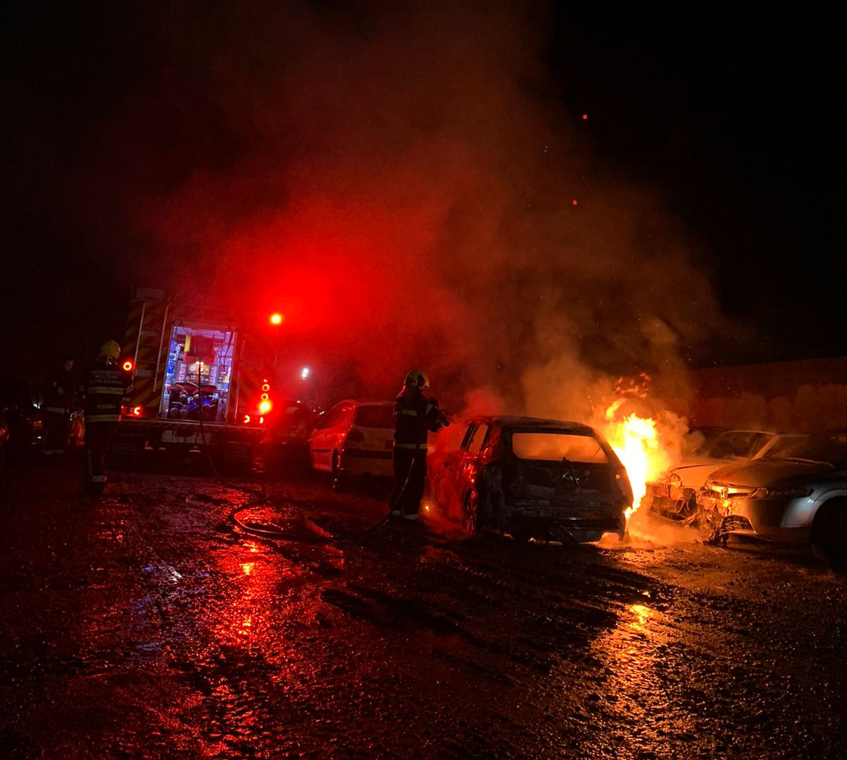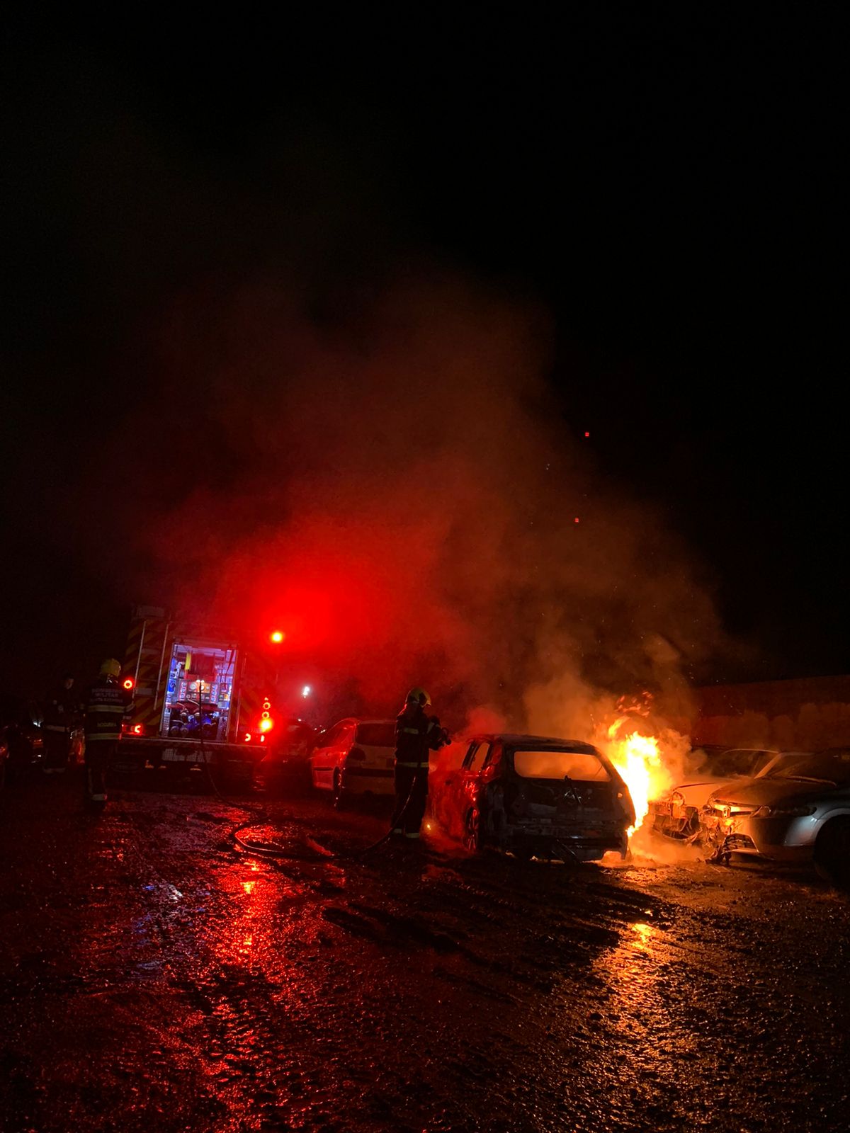 No local a guarnição constatou, que um veículo VW/Polo estava sendo consumido pelas chamas. Devido à irradiação do fogo, algumas peças plásticas de veículos adjacentes também foram atingidas.