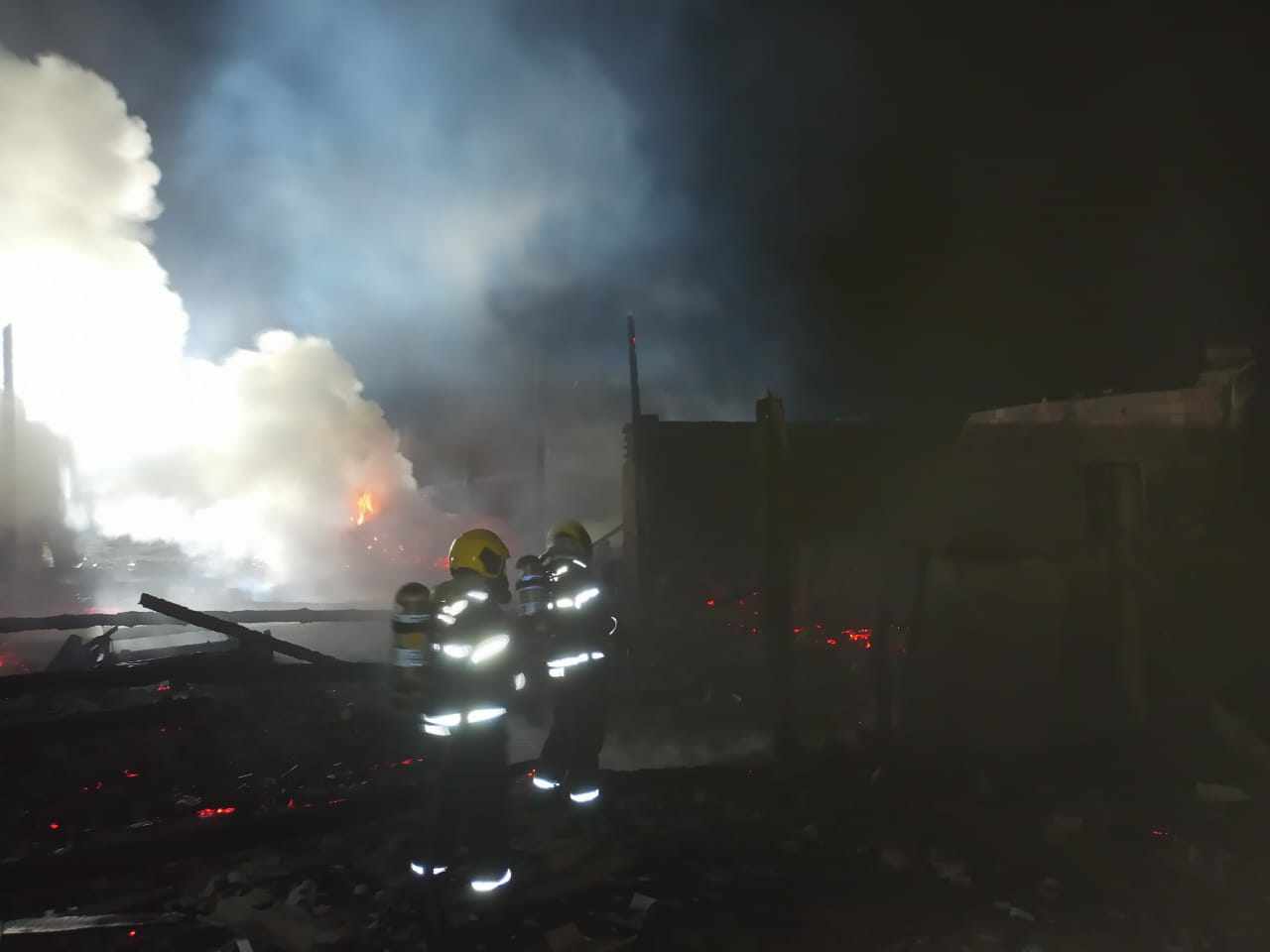 Durante o combate as chamad as paredes de alvenaria e os pilares de eucalipto colapsaram, e foi necessário a utilização de 8 mil itros de água para combate as chamas e mais 4 mil de água para realização do rescaldo.