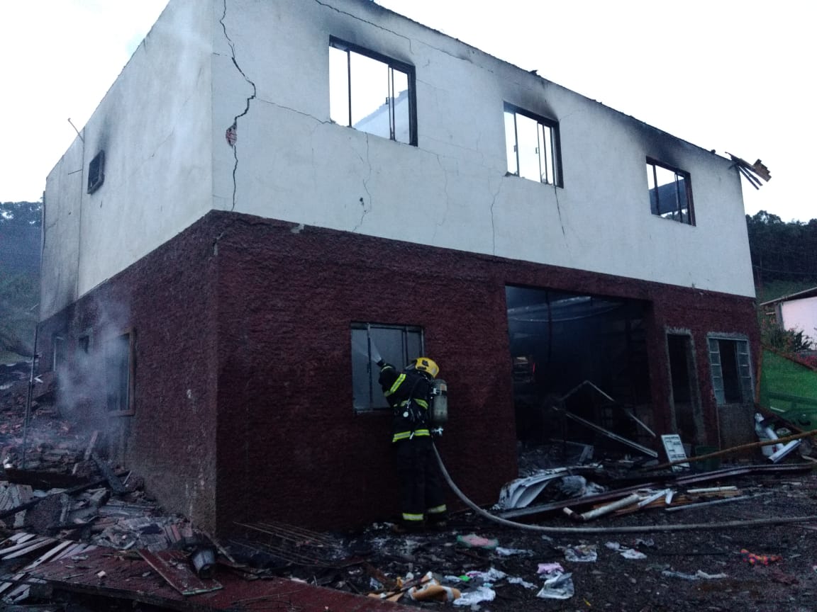 A edificação estava totalmente tomada pelas chamas no momento da chegada dos bombeiros. Foi realizada a extinção e rescaldo. Foram utilizados para ação aproximadamente 8 mil litros de água. Não teve bens salvos, houve um homem ferido com queimaduras no braço direito na tentativa de evitar que o incêndio se propagasse.
