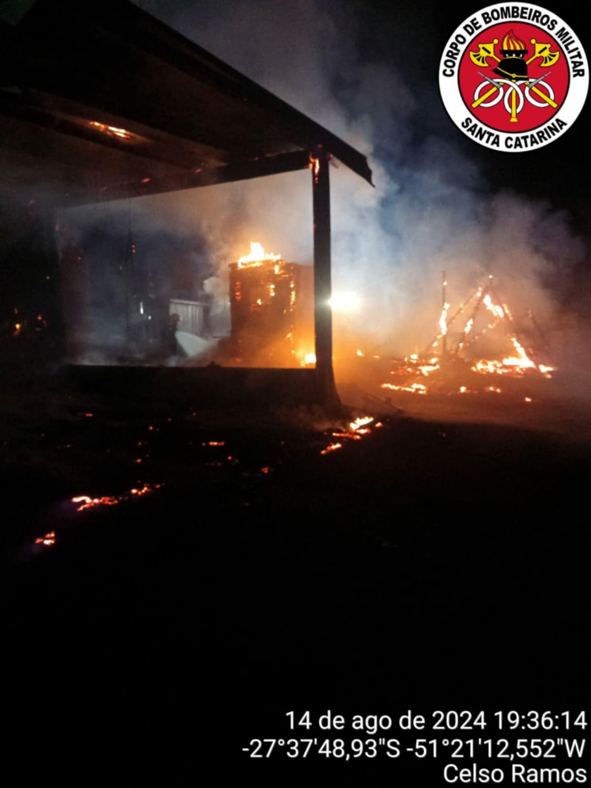 Celso Ramos – Por volta das 18h50 desta quarta-feira (14) o Corpo de Bombeiros de Campos Novos foi acionado para atender a um incêndio em madeireira no município de Celso Ramos. No local foi constatado que o fogo seria no escritório da madeireira, o qual media aproximadamente 49m² e na oficina, que media aproximadamente 96m².