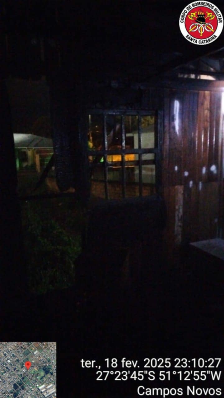 Campos Novos – Incêndio em residência foi registrado por volta das 22h50 desta terça-feira (18) em Campos Novos. Edificação de madeira, não havia moradores, o fogo estava confinado dentro de um dos dormitórios.