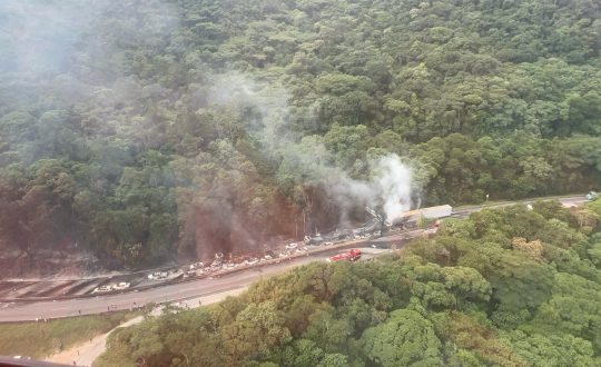 Equipes da concessionária e do Corpo de Bombeiros Militar de Santa Catarina (COBOM) seguem no local atuando no atendimento à ocorrência, resfriamento da pista e limpeza da área para garantir a segurança e posterior liberação do tráfego.