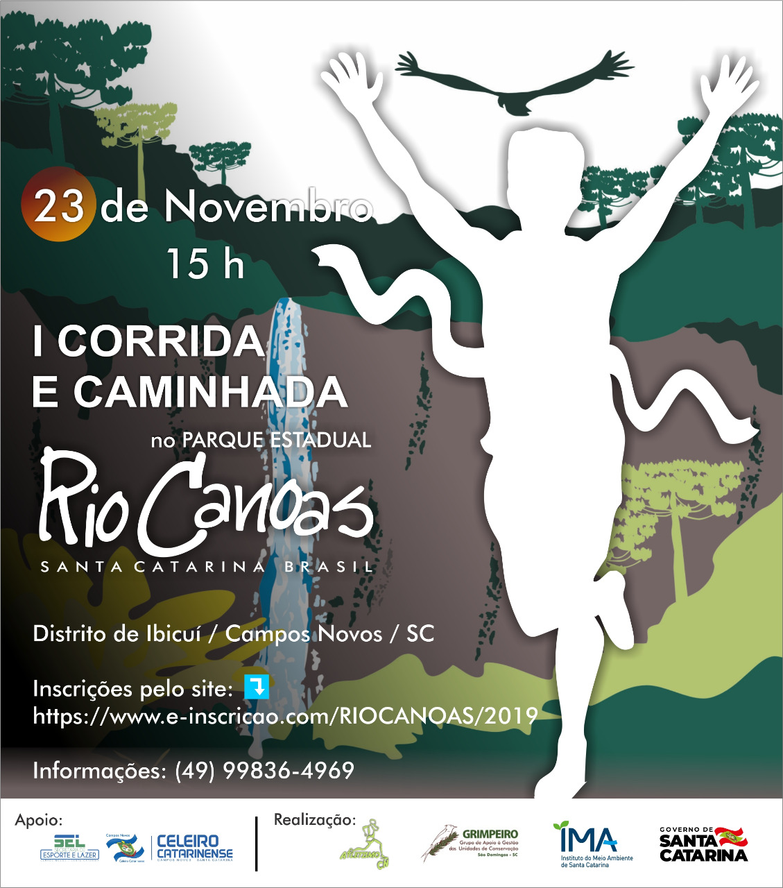 Campos Novos – O Parque Estadual Rio Canoas, em Campos Novos, promove no dia 23 de novembro, às 15h, a 1ª Corrida e Caminhada da Unidade. O percurso da competição contempla várias áreas do Parque com belas paisagens naturais. Além de estimular a prática de exercícios físicos, a prova busca aproximar ainda mais a população do município e da região com a Unidade de Conservação.