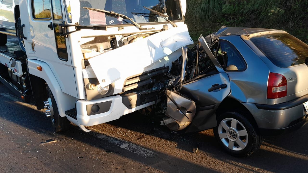 Xaxim – No início da manhã de domingo (02), o Corpo de Bombeiros foi acionado para o atendimento a um acidente com morte na BR-282, em Xaxim, no Oeste catarinense. No local, os bombeiros constataram uma colisão frontal entre um VW/Gol e um caminhão guincho. O condutor do automóvel, identificado como Lucas Léo, de 27 anos, foi encontrado já sem vida.