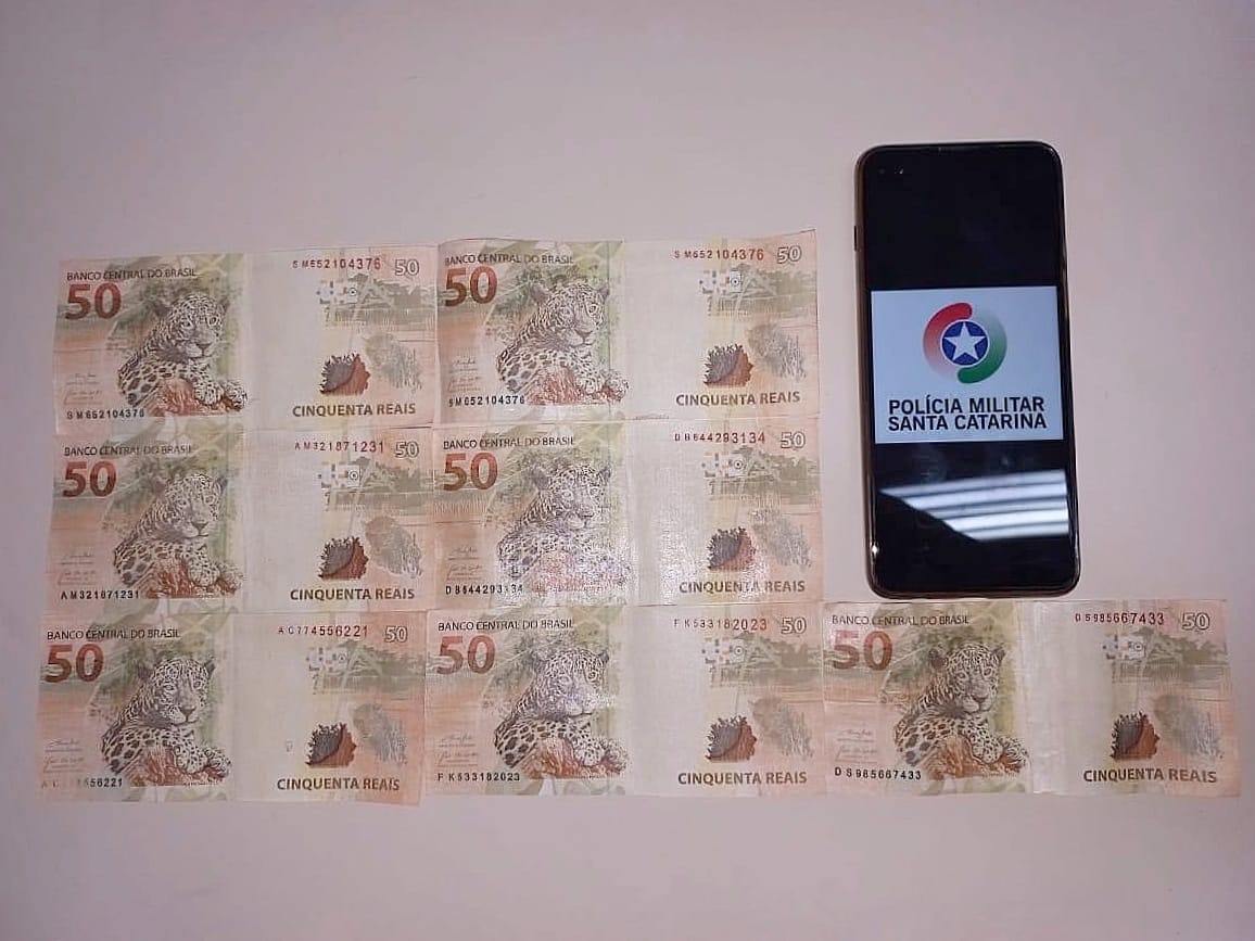 Na madrugada desta sexta-feira (09), a Polícia Militar prendeu um jovem de 20 anos em flagrante com notas falsas de 50 reais, em Caçador, no meio-oeste. O jovem confessou ter comprado o dinheiro de um amigo no bairro Martello.