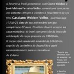 A Funerária Irani divulgou uma nota sobre o falecimento do jovem, informando que o velório e sepultamento acontecerão na comunidade.