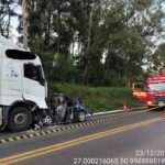 Jovem morre após carro ficar prensado sob caminhão na SC-355, em Fraiburgo