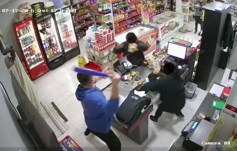 Ao perceberem que o homem não estava armado de fato, os funcionários reagiram. Uma atendente pegou um taco de beisebol escondido atrás do balcão e começou a agredir o assaltante. Logo depois, outro funcionário assumiu o taco e perseguiu o suspeito, que fugiu do local sem levar o dinheiro.