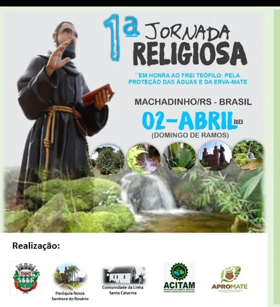 A expressiva representatividade de Frei Teófilo Antoniazzi, mais uma vez reunirá fiéis em Machadinho. A 1ª Jornada Religiosa ao Frei em oração pela intercessão das potencialidades locais, água e erva-mate, será realizada no dia 02 de abril de 2023 e terá uma programação especial. O evento integra o “Circuito Turístico das Águas, das Tropas e do Mate”.