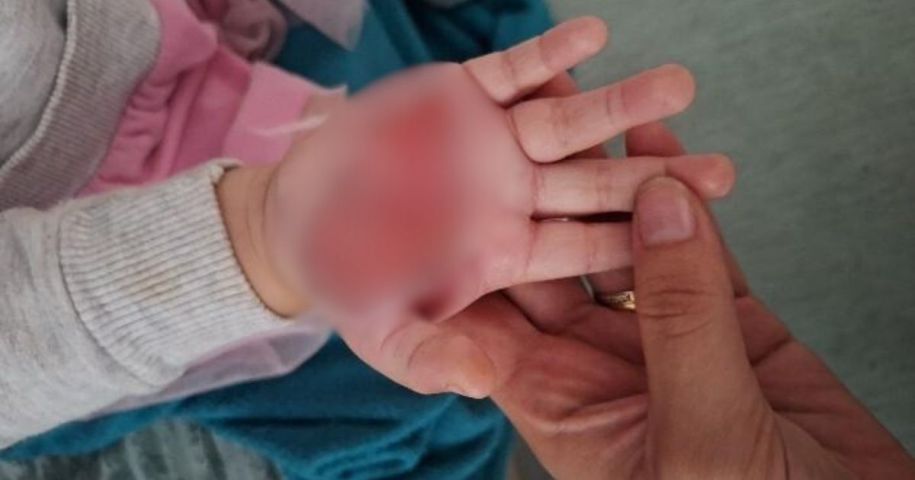 A queimadura atingiu toda a extensão da mão da vítima, provocando rompimento da pele e sendo classificada como lesão corporal grave.