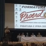 Piratuba – Foi realizada na tarde desta quarta-feira (05) no Centro de Eventos em Piratuba a solenidade de formatura do Programa Educacional de Resistência às Drogas (PROERD) desenvolvido pela Polícia Militar nas escolas de Piratuba e Ipira. Cento e vinte alunos, distribuídos em nove turmas, receberam os certificados. A instrutora é a Sargento Fabiana Cabral.