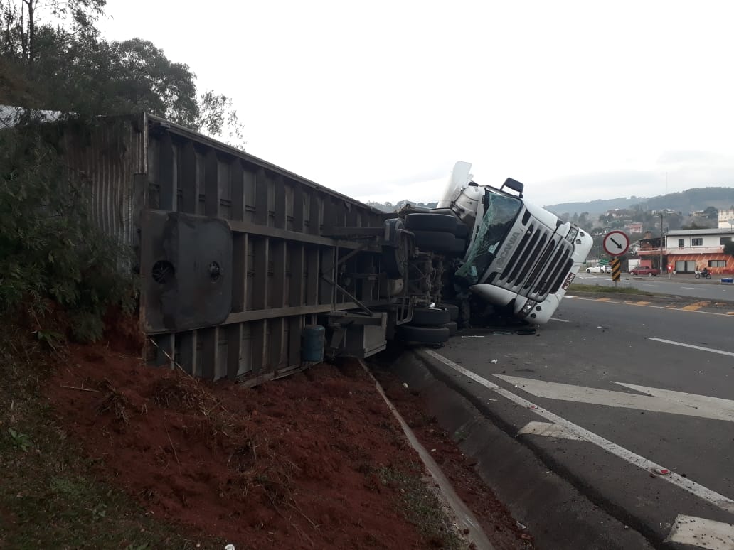 O acidente aconteceu no mesmo local em que uma carreta tombou na nesta, terça-feira (27), sentido Campos Novos a Joaçaba.