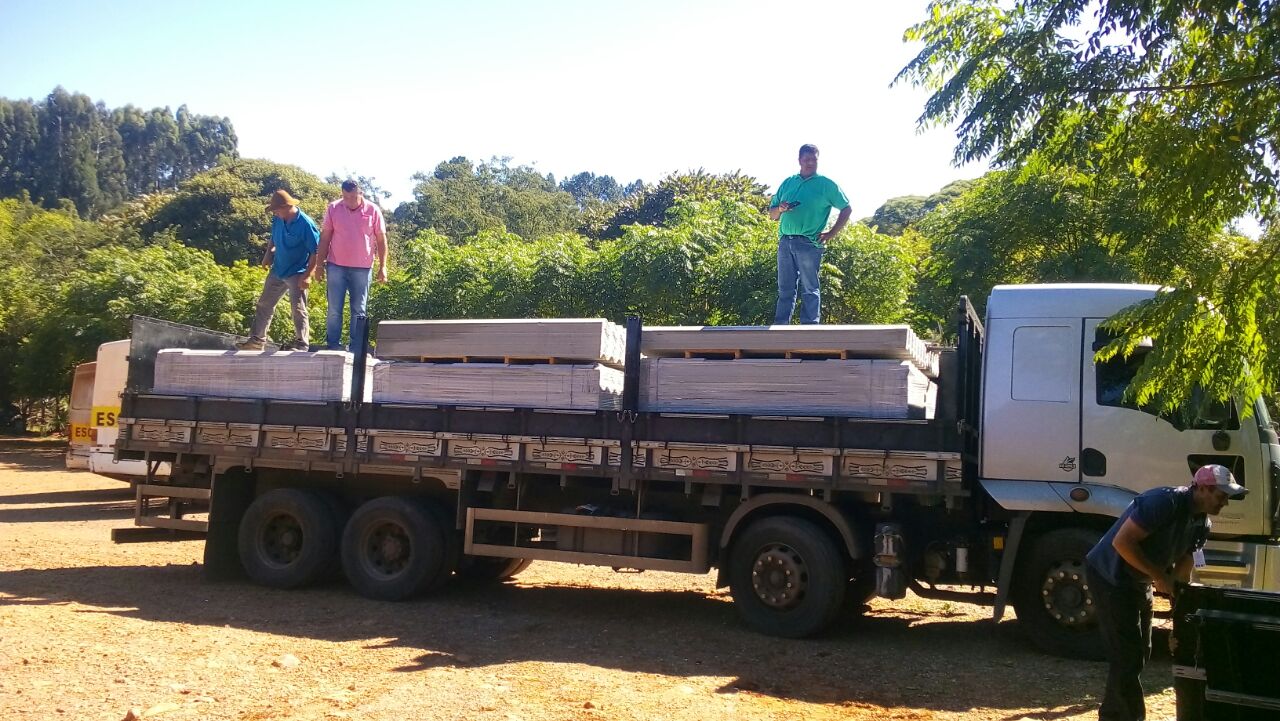 Nesta tarde (22), parte do material que será usado para reconstrução das casas atingidas chegou no município. De acordo com prefeito em exercício, Nelson Almeida, estão sendo feitos trabalhos para cobertura e a expectativa é de que, até o fim de semana, sejam concluídos.