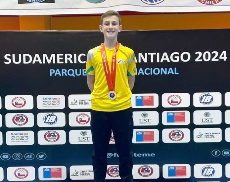 O mesatenista joaçabense Antônio Regensburger Poletto participou no Chile, nos dias 22 a 28 de abril, do Campeonato Sul-Americano de Tênis de Mesa Sub15 e Sub19. Em sua primeira competição internacional, o jovem atleta, de apenas 12 anos, conquistou o ouro na equipe e a prata na dupla masculina Sub15, uma categoria acima de sua idade.