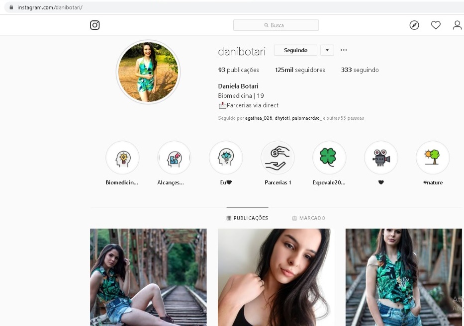 Botari atua com parcerias, gerencia páginas de empresas e até mesmo foi contratada para tomar conta do perfil da Expovale 2019 no Instagram.