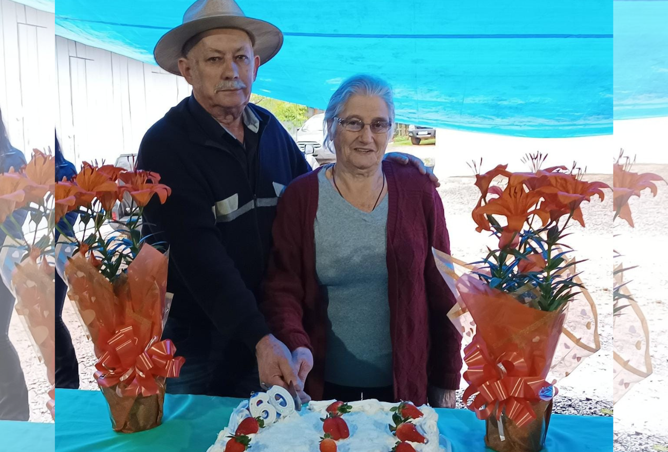 O casal Selvino Zape e Glória Sandi Zape, ambos de 79 anos, se conheceram na escola e completaram em 2022, 60 anos de casados. Ele é natural de Caxias do Sul (RS) e ela é natural de Vargeão.