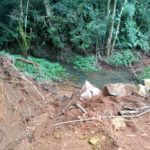 Os moradores afirmam que o cano que havia no local teria sido entupido após o despejo de terra e pedra. O riacho que corta a via teria sido deslocado, sendo implantados canos de 40 mm, mesmo tamanho dos que foram removidos, ou seja, com a mesma capacidade de vazão. Isso teria feito com que a água empossasse depois da primeira chuva. A água já estaria infiltrando e abrindo fendas no solo, situação que pode se agravar futuramente, uma vez que a água não teria para onde escoar, além de assorear o riacho gerando mais problemas, bem como o risco de o acúmulo se tornar um criadouro de mosquitos.