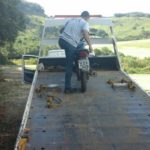 A moto foi recolhida pelo guincho e levada à delegacia de polícia para ser entregue ao proprietário. Ela não aparentava avarias.