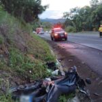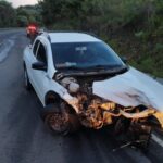 O outro veículo envolvido era uma motocicleta de cor preta, conduzida por um homem, que foi encontrado às margens da rodovia, fora da pista de rolamento. A vítima apresentava ferimento corto-contuso e fratura fechada no membro inferior esquerdo. Após os procedimentos de atendimento pré-hospitalar, o motociclista foi protocolado e encaminhado ao hospital para receber os cuidados médicos necessários.