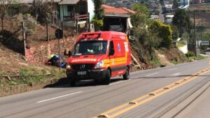 O Corpo de Bombeiros foi acionado para atender a ocorrência. O motociclista foi encaminhado ao Hospital para atendimento médico com suspeita de fratura.