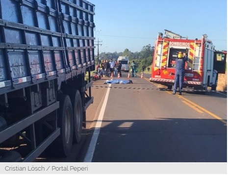 Segundo informações obtidas pelo Portal Peperi, o acidente envolveu uma motocicleta placa de Barra Bonita e um caminhão de Belmonte.