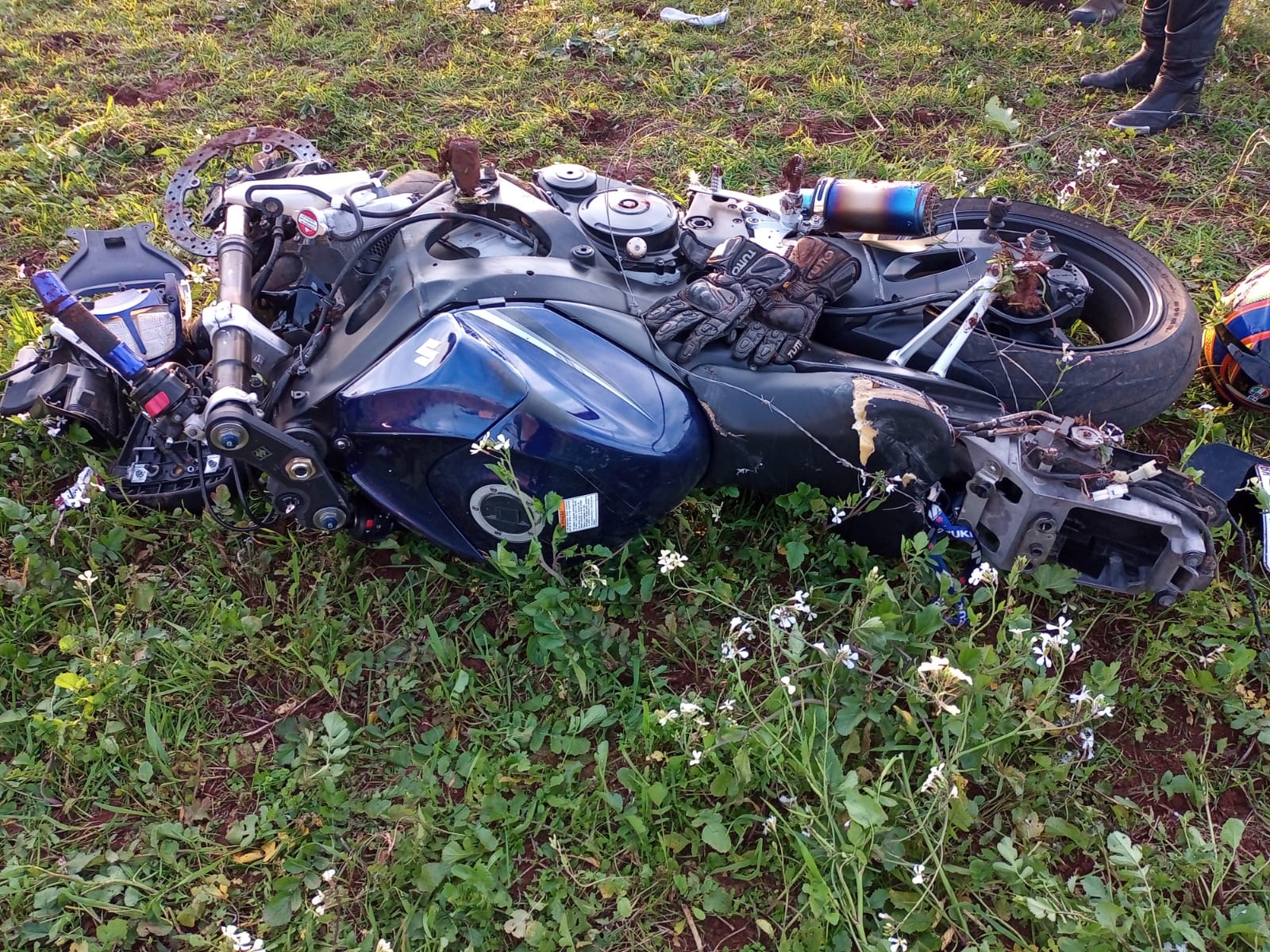 Ele disse estar com dor intensa no pulso direito e escoriações no ombro esquerdo e perna esquerda. Foi imobilizado o pulso ferido e realizados os demais procedimentos antes da condução ao Hospital Nossa Senhora das Dores.