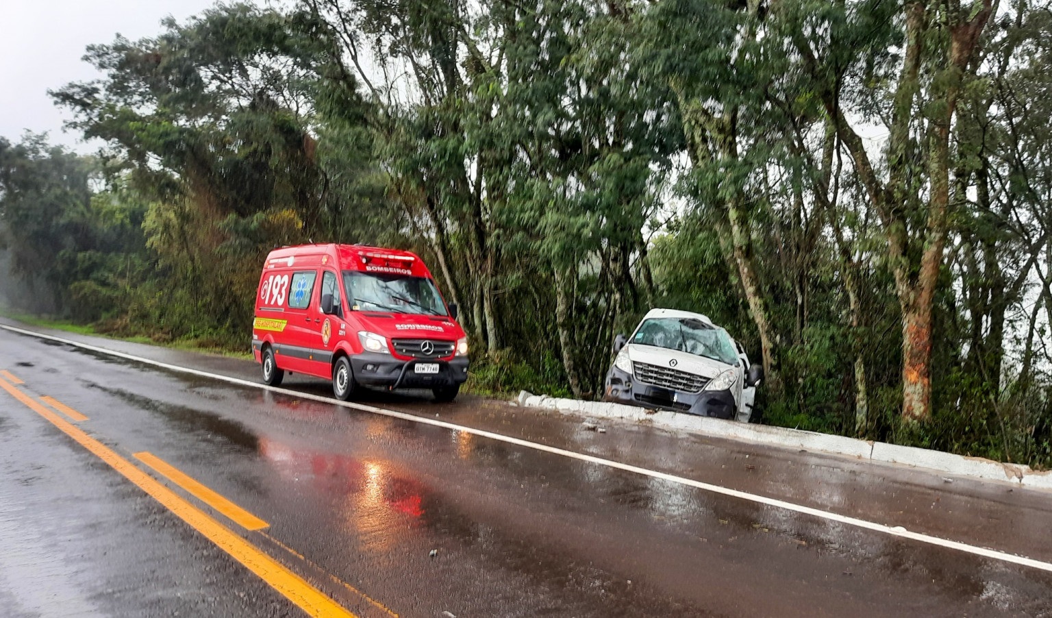 Conforme o Corpo de Bombeiros Voluntários de Irani, o motorista de 31 anos, ficou preso mecanicamente dentro do veículo, apresentando escoriações no antebraço esquerdo e na região da cabeça.