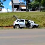 No Gol com placas de Monte Carlo havia um casal e o filho de 06 anos, moradores da localidade de São Simão, interior de Campos Novos. O homem identificado como Ademir Varela, sofreu ferimentos leves e a criança não se feriu. Já a mulher (22 anos) que conduzia o carro sofreu suspeita de fratura na perna. As vítimas foram conduzidas aos hospital Dr. José Athanásio.