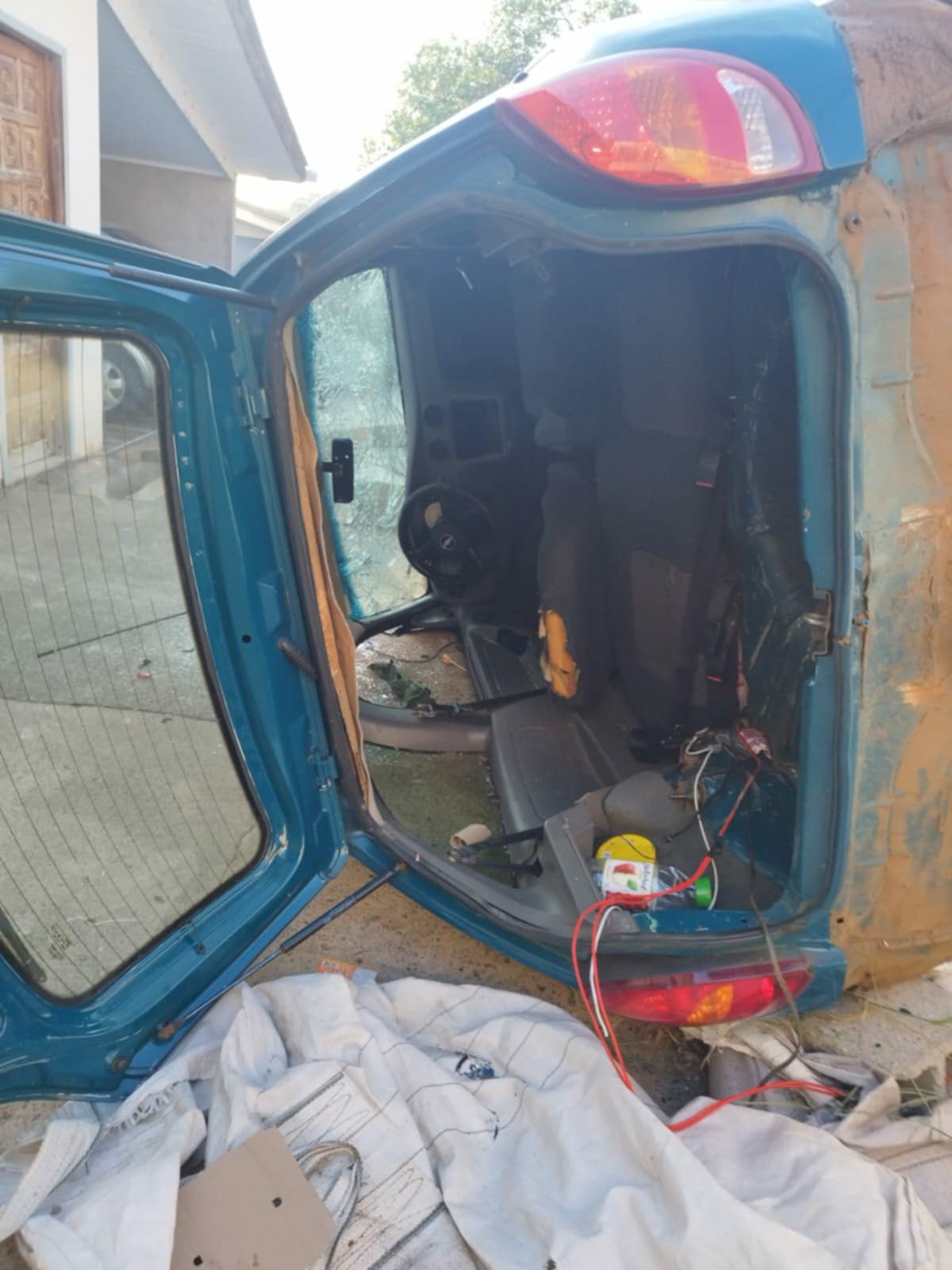 O carro estava lateralizado com a parte esquerda para baixo após cair em um terreno de nível inferior que o da rua. Nele estava uma mulher de 31 anos, consciente e orientada, com os braços e pernas presos ao veículo, do lado de fora.