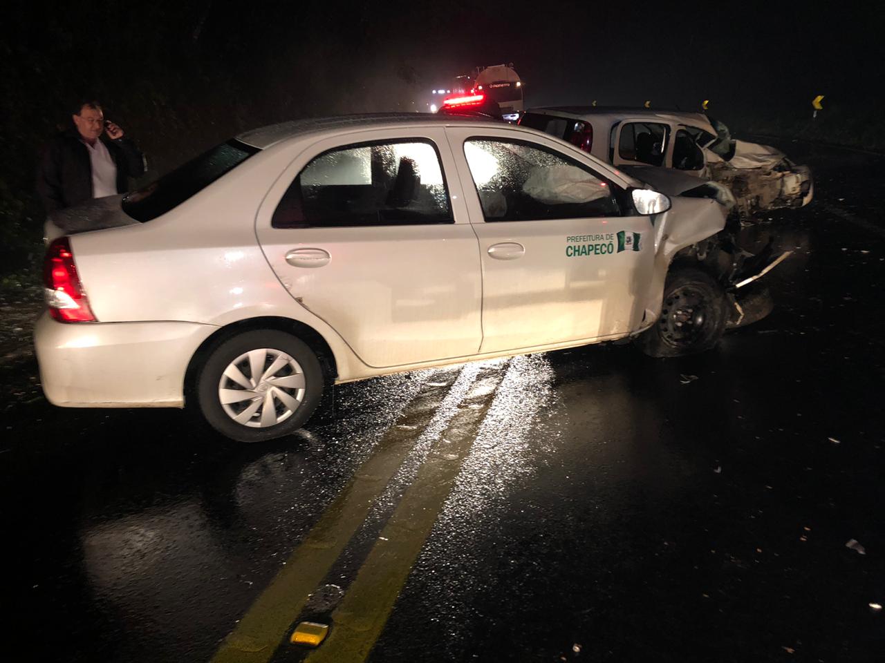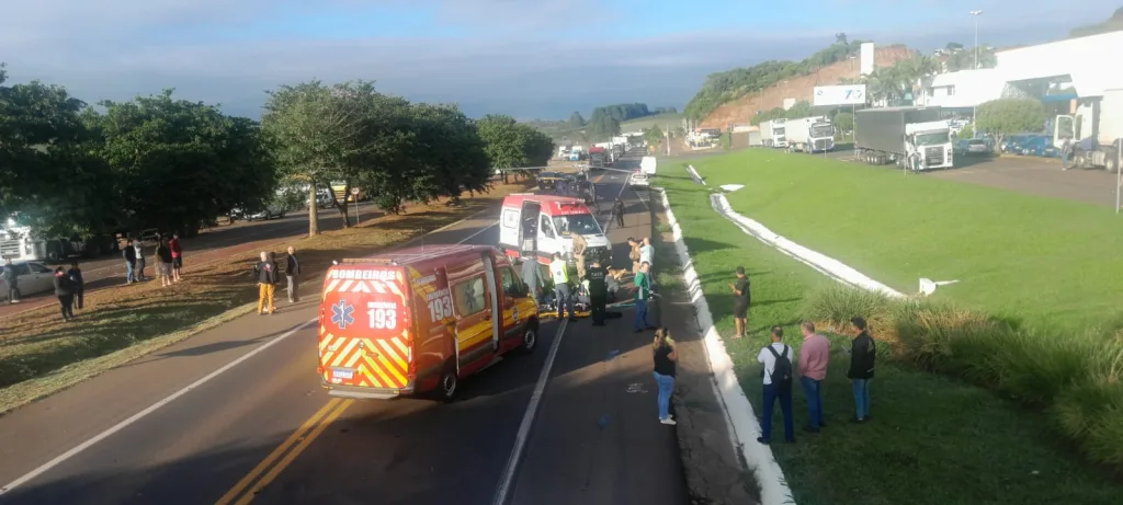 O teria rodado na pista e atingido o veículo de Chapecó. A Polícia Rodoviária Federal fez os levantamentos e orientou o trânsito.