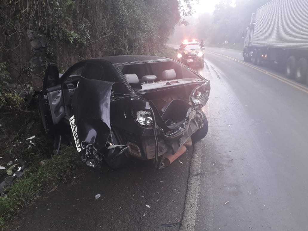 No local, um VW/Fox colidiu na traseira de um ônibus. A motorista, identificada como Judite Saugo, era moradora de Itá e morreu ainda no local do acidente.
