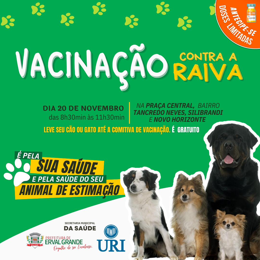 Erval Grande – A raiva é uma doença perigosa, transmitida aos seres humanos através da exposição com a saliva de animais infectados com a doença, principalmente por meio da mordedura. Pensando na saúde da população e dos cuidados com os animais de estimação, pela primeira vez no município de Erval Grande será realizada a vacinação totalmente gratuita para cães e gatos.