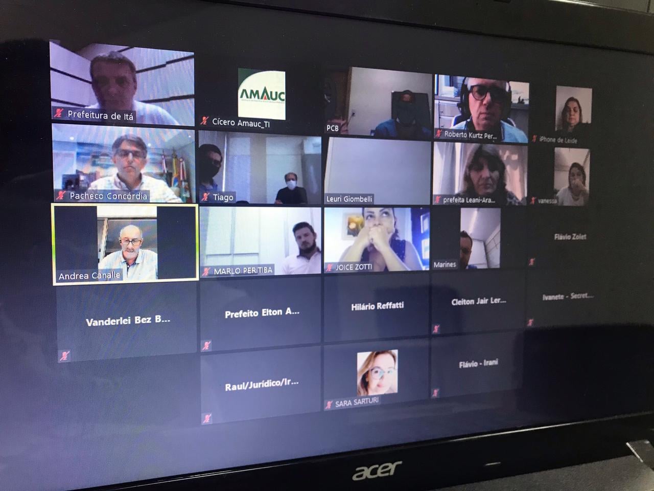 Concórdia – Na manhã desta segunda-feira, dia 22, prefeitos (as), secretários de saúde da AMAUC e assessores jurídicos, reuniram-se virtualmente para debater o atual cenário da região Amauc em relação a pandemia do Coronavírus. A ocupação dos leitos exclusivos para tratamento da COVID-19, e a dificuldade que o Hospital São Francisco encontra para contratar profissionais para atender a demanda neste período, a evolução dos casos ativos na região e a necessidade de incrementar a fiscalização para o cumprimento das normas e cuidados por parte da população, também foram assuntos da pauta da reunião virtual.