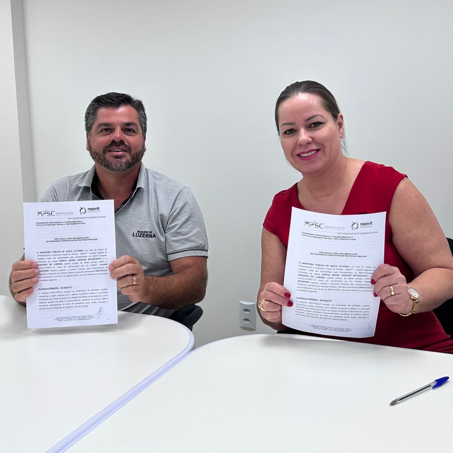 Luzerna é o primeiro município a firmar um termo de cooperação com o recém-instalado Núcleo Regional de Enfrentamento a Violências e Apoio às Vítimas (NEAVIT) de Joaçaba – órgão do Ministério Público de Santa Catarina (MPSC) que visa amparar pessoas vítimas de crimes e que tiveram seus direitos violados.