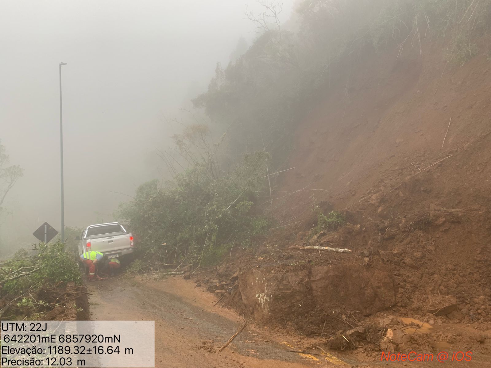 A Polícia Militar Rodoviária (PMRv) confirmou mais uma queda de barreira na SC-390, na Serra do Rio do Rastro, nesta quarta-feira (19). A primeira ocorrência aconteceu por volta das por volta das 8h45, quando um deslizamento bloqueou o KM 406,6. Mais tarde, já por volta da 16 horas, uma nova queda de barreira interditou novamente da rodovia no mesmo local e atingindo um veículo.