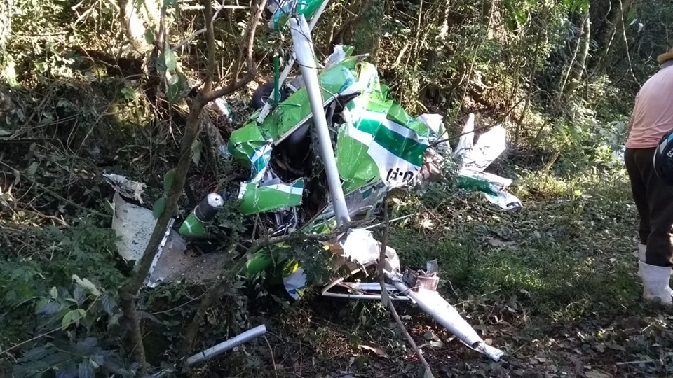 O avião decolou do aeroporto municipal e logo depois houve a queda. O avião de prefixo PU-PRI, ultraleve da marca Coyote fabricado pela Flyer ficou completamente destruído.