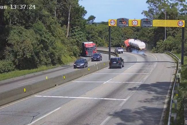 Na ocasião, um caminhão-tanque carregado com etanol tombou e explodiu, provocando um incêndio de grandes proporções que deixou cinco pessoas feridas.
