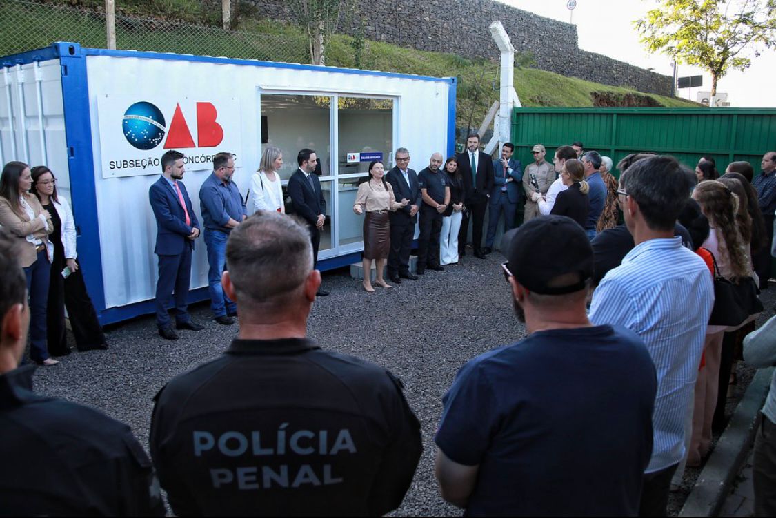 A presidente da OAB/SC, Cláudia Prudêncio, inaugurou duas novas estruturas para atendimento da advocacia e da sociedade em Concórdia: a primeira sala de apoio ao trabalho da classe junto ao Presídio Regional de Concórdia e sala do projeto “OAB Por Elas”, destinada ao atendimento de mulheres em situação de violência e vulnerabilidade.