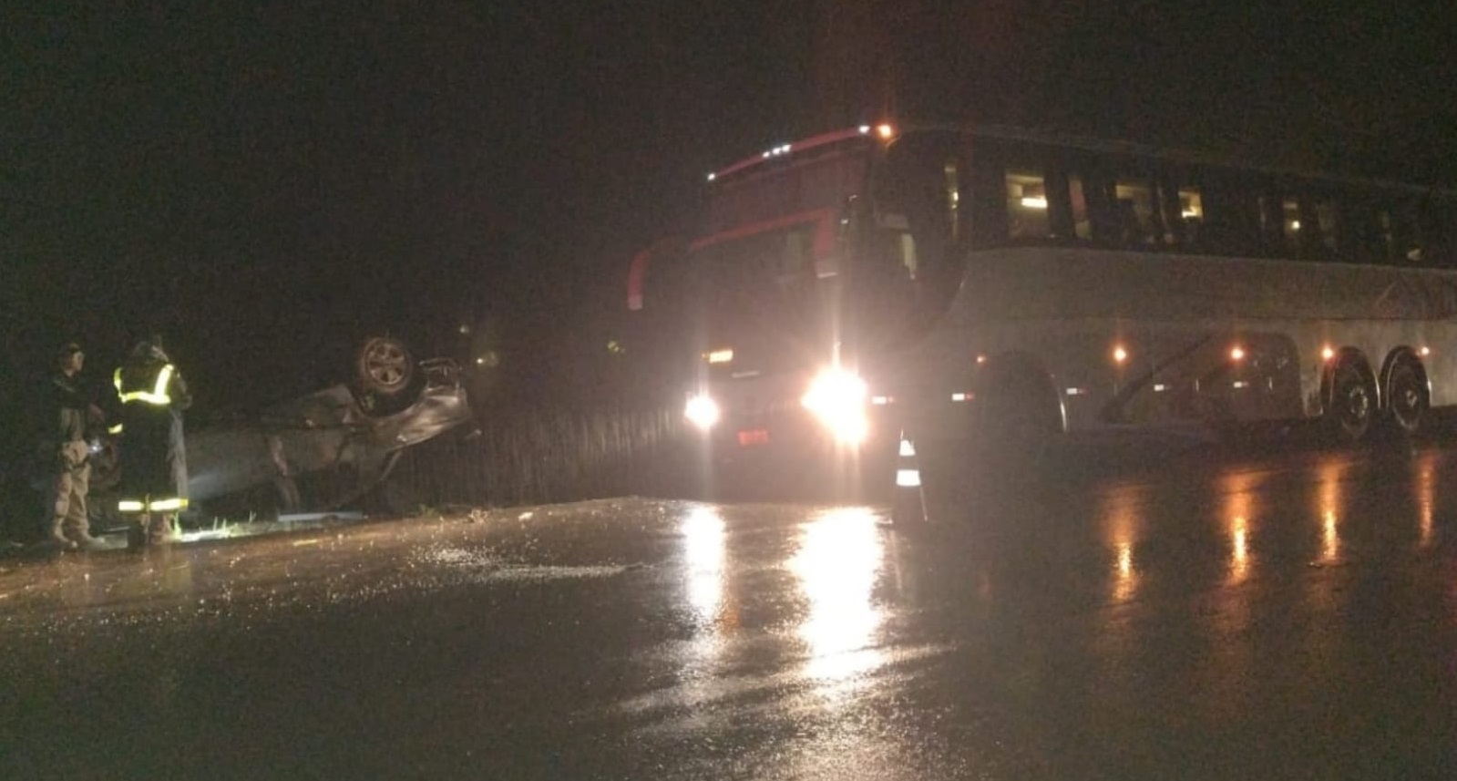 Lontras – Por volta das 3h10 deste sábado (12) o Corpo de Bombeiros Voluntários de Lontras foi acionado para atender acidente de trânsito na BR-470. O fato foi no km 128 da rodovia federal e envolveu um ônibus com 29 passageiros que colidiu em uma caminhonete Renault Oroch. Os ocupantes do coletivo, todos recusaram atendimento. Segundo informações, populares e um guincho estavam ajudando as vítimas da caminhonete quando o ônibus, que fazia linha Piratuba/Itapema, avistou o guincho, fazendo o desvio do do veículo, mas não avistando a caminhonete que estava na beira da pista em um local onde não possui acostamento, colidindo na traseira da caminhonete.