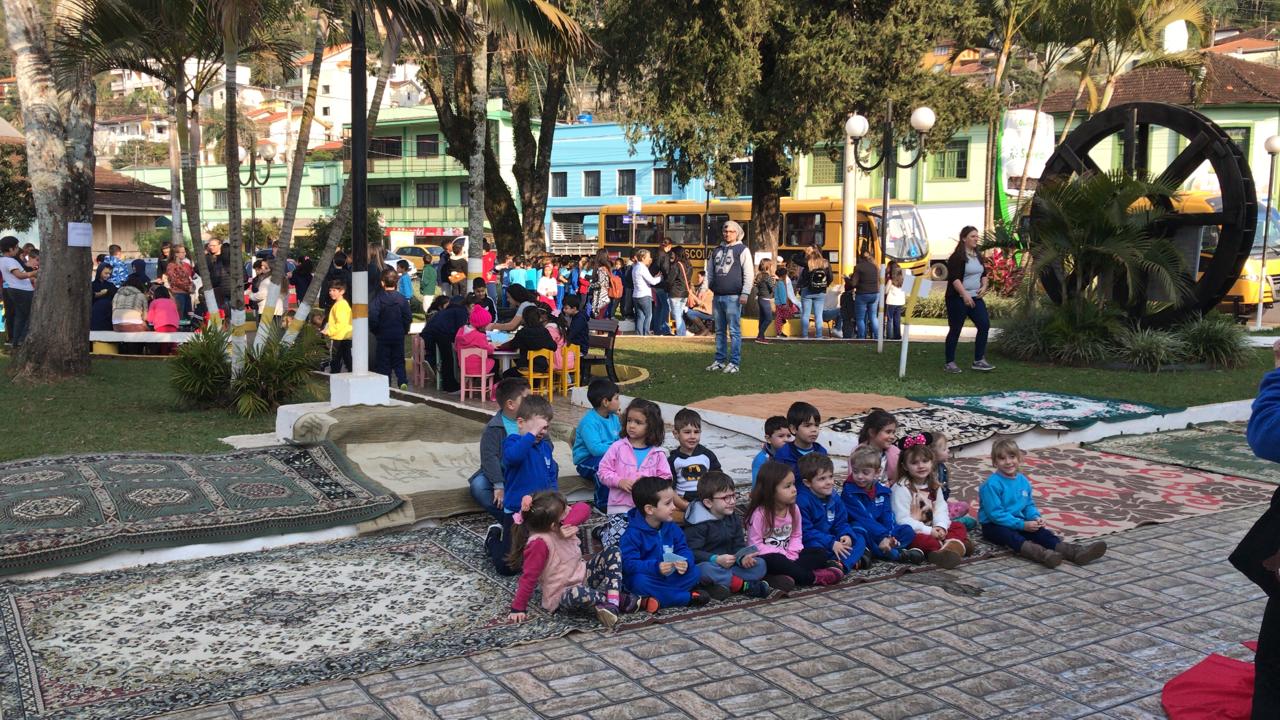 Está acontecendo nesta sexta-feira, dia 16, a 3ª Edição do Evento Arte, Leitura e Brincadeira na praça. A ação, promovida pela Secretaria de Educação do Município de Ouro, é realizada na praça Pio XII nos períodos matutino e vespertino com todos os alunos, desde o Maternal II até o 5º Ano.