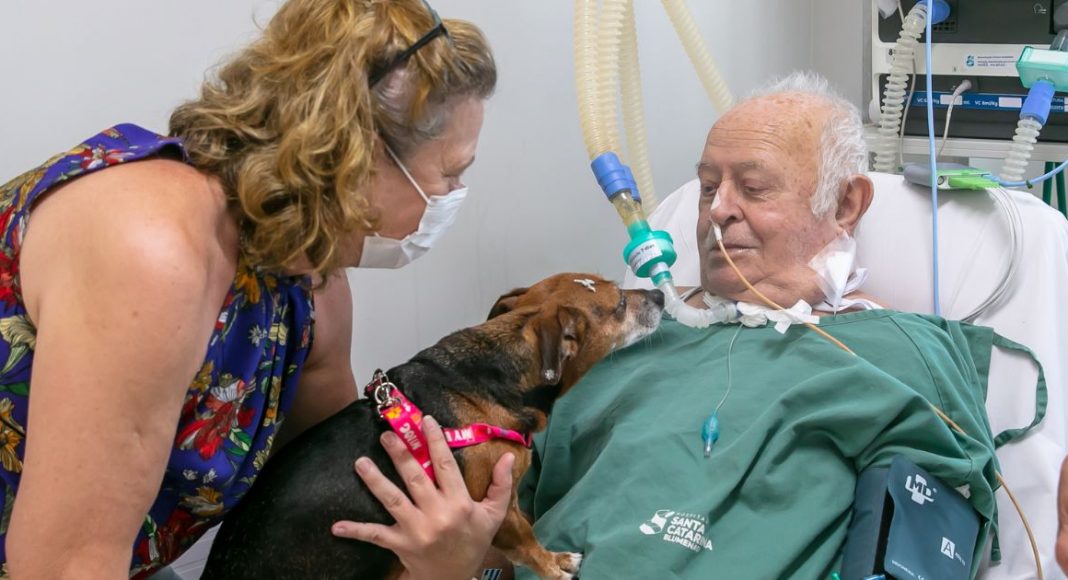 Internado no Centro de Terapia Intensiva do Hospital Santa Catarina de Blumenau desde o dia 14 de dezembro, o paciente Emanuel Osvaldo Tillmann, de 82 anos, recebeu nesta quarta-feira (08) a visita da sua cadelinha de estimação, Uni.