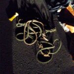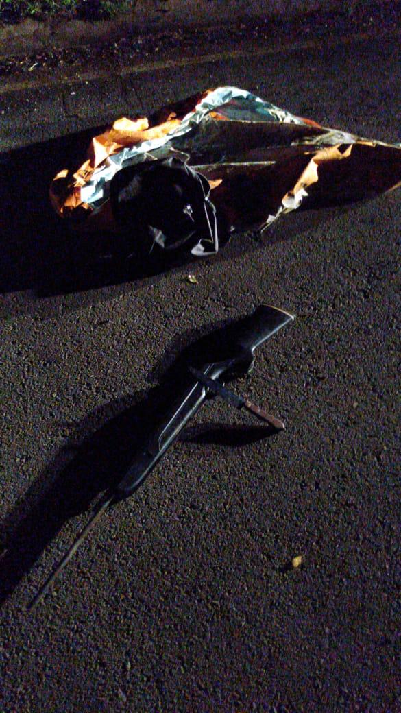 Ao serem abordados, os quatro homens suspeitos foram revistados, bem como o veículo, sendo encontrado com eles uma espingarda (aparentemente de pressão), uma faca, uma corda e um saco plástico grande. Além disso, o veículo estava com a documentação atrasada, sendo autuado e guinchado para o pátio de veículos apreendidos.