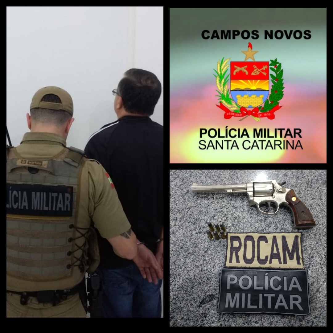 Campos Novos – Um homem foi preso pela Polícia Militar portando uma arma de fogo. A ocorrência foi na tarde desta segunda-feira (30) em Campos Novos. O homem, de 45 anos, estava com um revólver calibre 38, no centro da cidade.