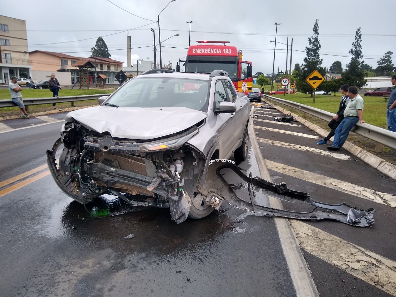 A guarnição, em seguida, foi até o Hospital Nossa Senhora das Dores para coletar o relato do piloto da motocicleta. Ele estava deitado numa maca com várias escoriações pelo corpo e recebendo medicação. Relatou que pilotava a Honda CG 125 quando o carro da frente parou para fazer uma conversão a esquerda, pois, tinha um outro carro vindo muito rápido na pista oposta.