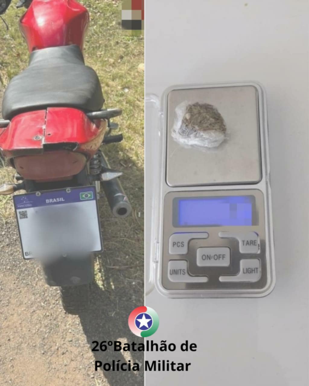 Diante dos fatos, o condutor foi preso e encaminhado à Delegacia de Polícia Civil, juntamente com a motocicleta e a droga apreendida, para os procedimentos cabíveis.