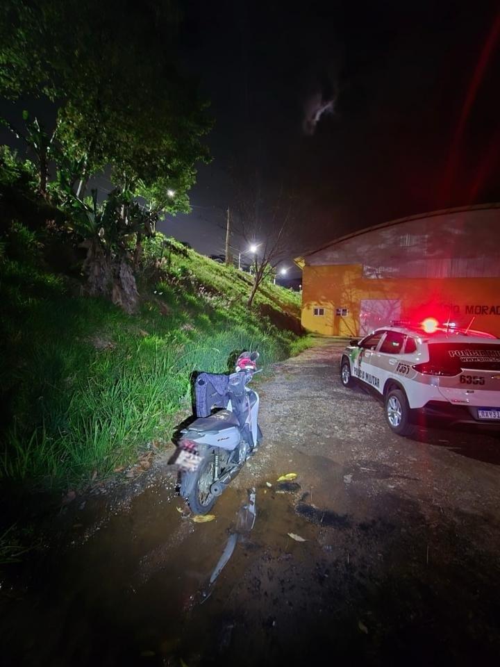 No local, os policiais constataram que se tratava de uma Honda Biz, com registro de furto ocorrido na manhã do mesmo dia, no bairro São Vicente.