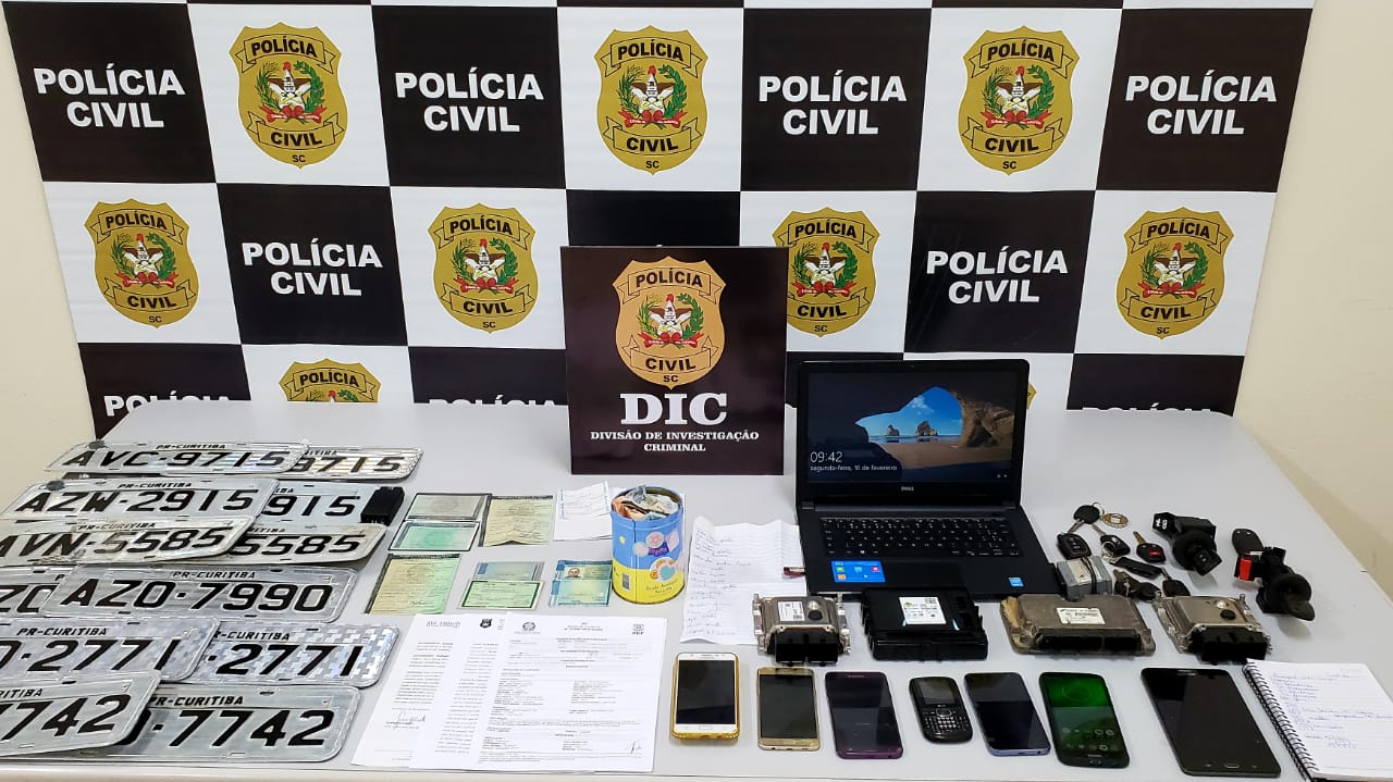 Nesta segunda, em Joinville e Barra Velha, foram cumpridos mandados de busca e apreensão nas residências dos investigados, onde foram apreendidos módulos utilizados para furtar veículos, um automóvel com registro de furto, placas falsas e comprovantes de movimentações bancárias.